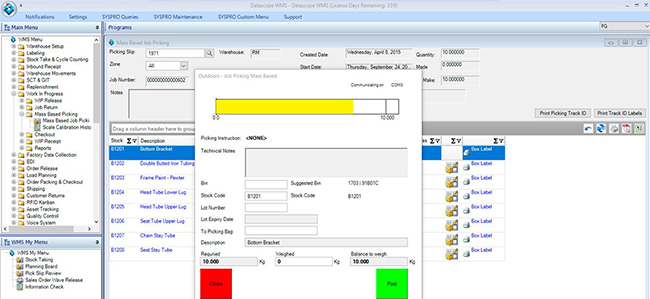 In some industries, there is a need to pick component stock for the factory that needs to be weighed out. Factories in the Chemical, Paint, Food or Pharmaceutical industries have this need.